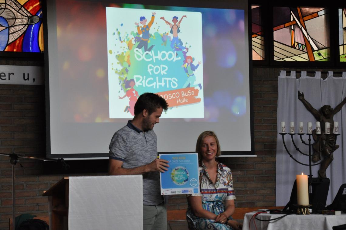 Le 27 juin 2023, BuSo Don Bosco Halle a reçu le label École des droits de l'enfants, donné par KIYO. Cette journée, l'école a célébré son 50e anniversaire, et le jour était très festives ! Les élèves ont pu participer à de nombreuses activités, dont un chouette jeu sur les droits de l'enfant ! Au cours des trois années du parcours de School for Rights, l'école a entrepris plusieurs initiatives pour mettre en avant les droits de l'enfant et la citoyenneté mondiale. Le plan d'action élaboré à la fin du projet garantit la durabilité des initiatives ! Félicitations à l'école !
