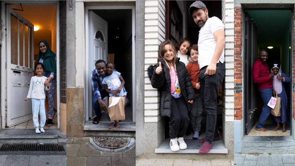 Ze belden bij elk kind aan om een babbeltje te maken, te vragen hoe het met de kinderen en ouders ging. Bij elk gezin maakten ze een foto van de voordeur en van het gezin. Heel bijzonder om te zien welke verhalen achter elk van die deuren tevoorschijn komen. En heel fijn om zoveel blije gezichten te zien!