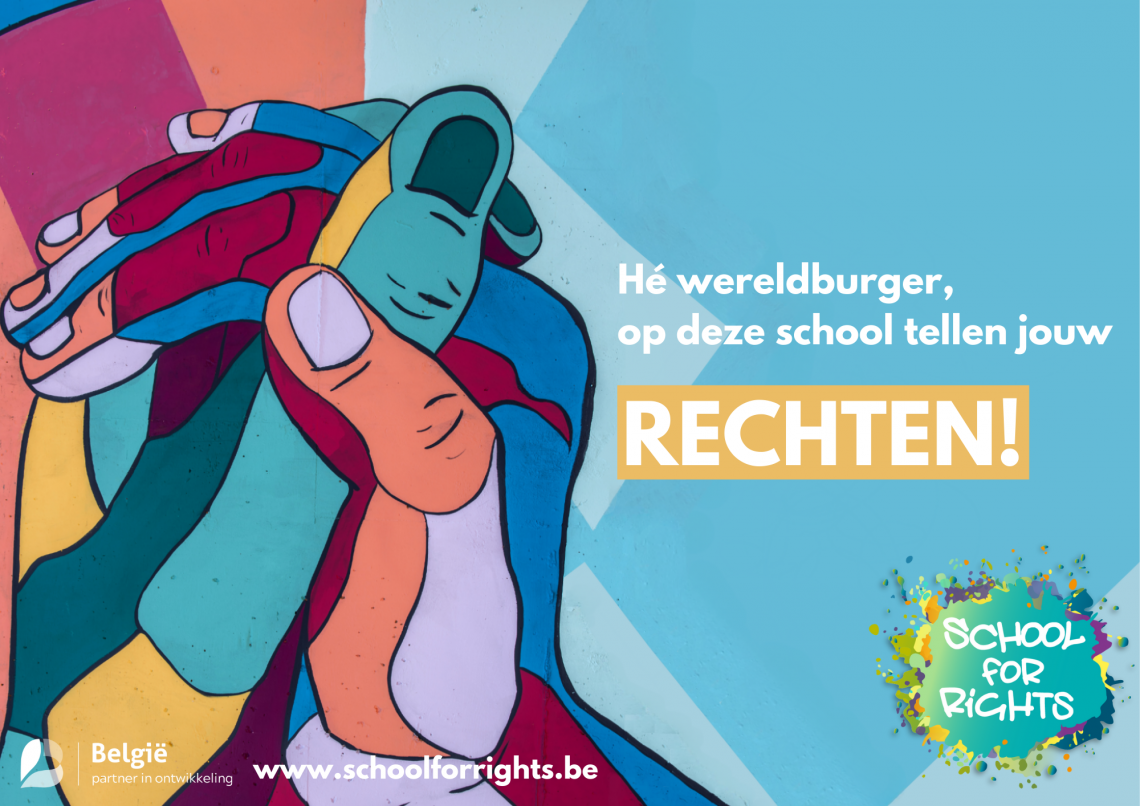 ‘Hé wereldburger, op onze school tellen jouw rechten!’. Een nieuw schooljaar, een nieuwe slogan om in de verf te zetten dat op jouw school de rechten van kinderen en jongeren worden gerespecteerd. Kies zelf welke versie het beste past bij jouw school en zet wereldburgerschap in de kijker!