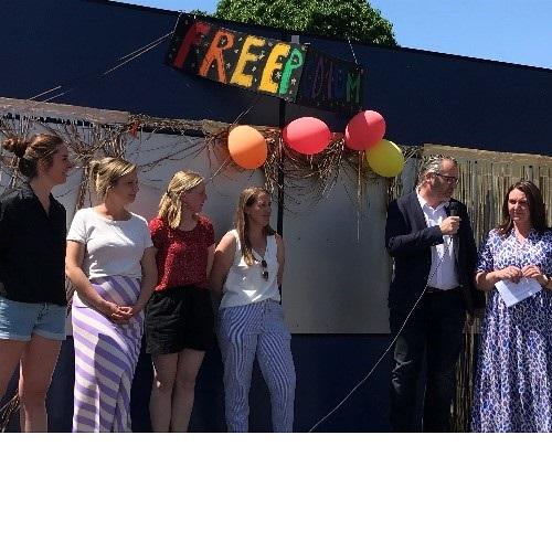 Op zaterdag, 3 juni mochten we officieel basisschool De Lampion in Peutie welkom heten binnen ons netwerk van kinderrechtenscholen. Tijdens het schoolfeest werd door schepen van onderwijs, Jo De Ro, uit naam van partners PLAN International België en UNICEF België het label kinderrechtenschool toegekend en gevierd. Het label is de bekroning op het twee-jaar-lange traject dat de school via een enthousiast kernteam van leerkrachten, zorgcoördinators en directie heeft afgelegd. Zij namen de hele school mee op dit bijzondere avontuur, inclusief de leerlingen. Elke maand werd er een specifiek kinderrecht in de kijker gezet, door alle leerkrachten en alle klassen van de hele school. Maar ook het schoolfeest stond helemaal in het teken van kinderrechten met versieringen, een overzicht van wat de leerlingen tijdens het schooljaar verwezenlijkt hebben en dansjes gelinkt aan kinderrechten.
