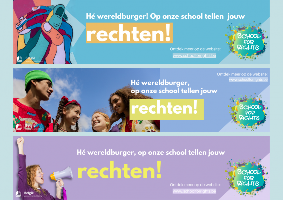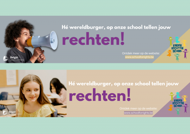 Wil je graag een banner van School for Rights / Kinderrechtenscholen op jullie Smartschool, of op de website van jullie school om wereldburgerschap en kinderrechten in de kijker te zetten? Ontdek snel onze nieuwe ontwerpen!