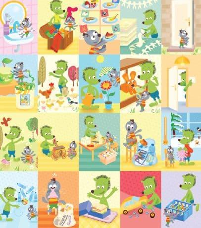 Sluit aan bij klasthema’s als voedsel, dieren, zorgen, spelen, knutselen, natuur …